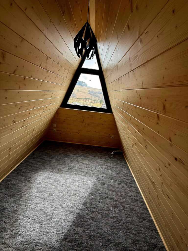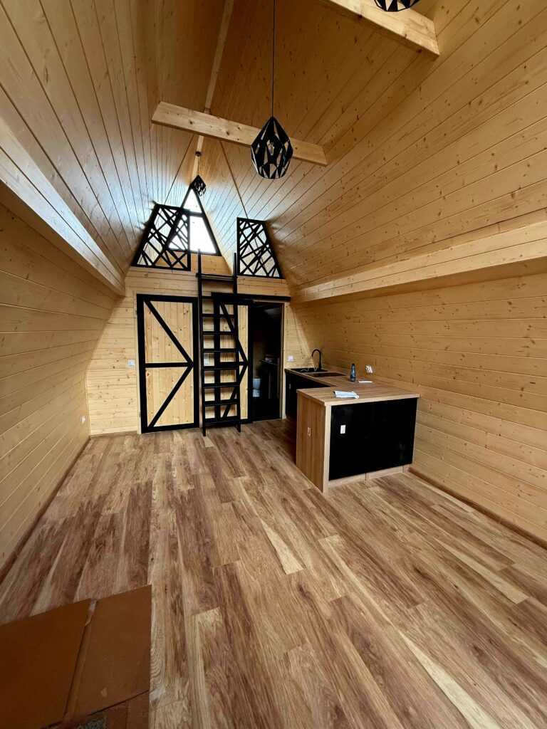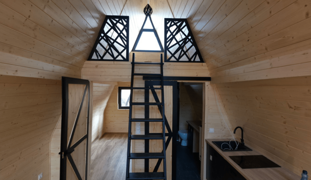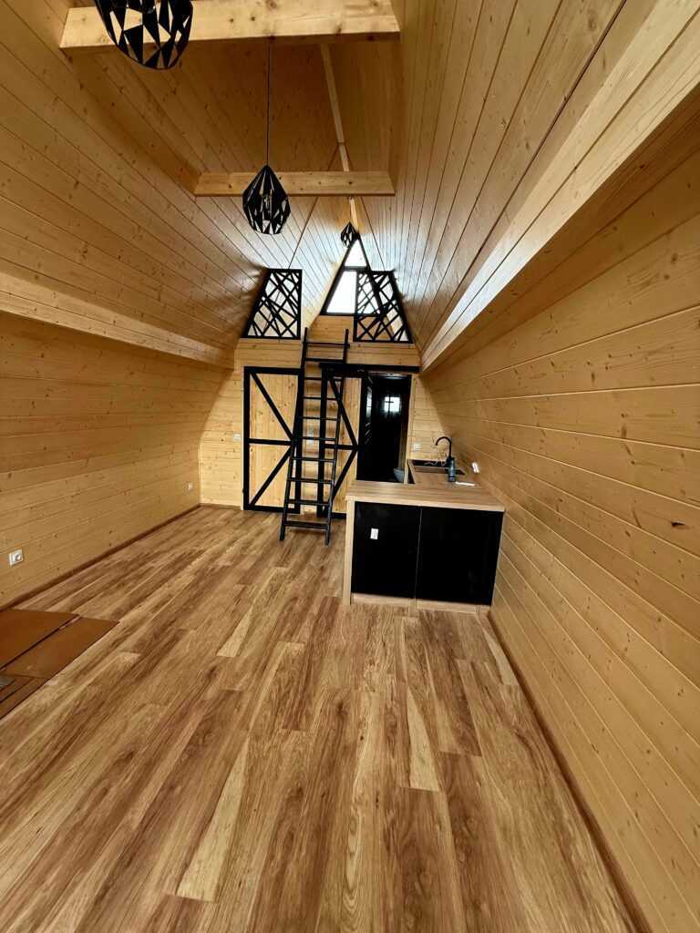 Trójkątne domki drewniane są bardzo popularne w serwisach typu Airbnb i Booking dzięki unikalnemu designowi i klimatycznemu wnętrzu. Domek BRDA 35 m² to idealna powierzchnia dla 2–6 osób, co zwiększa potencjał obłożenia i przychody z wynajmu.