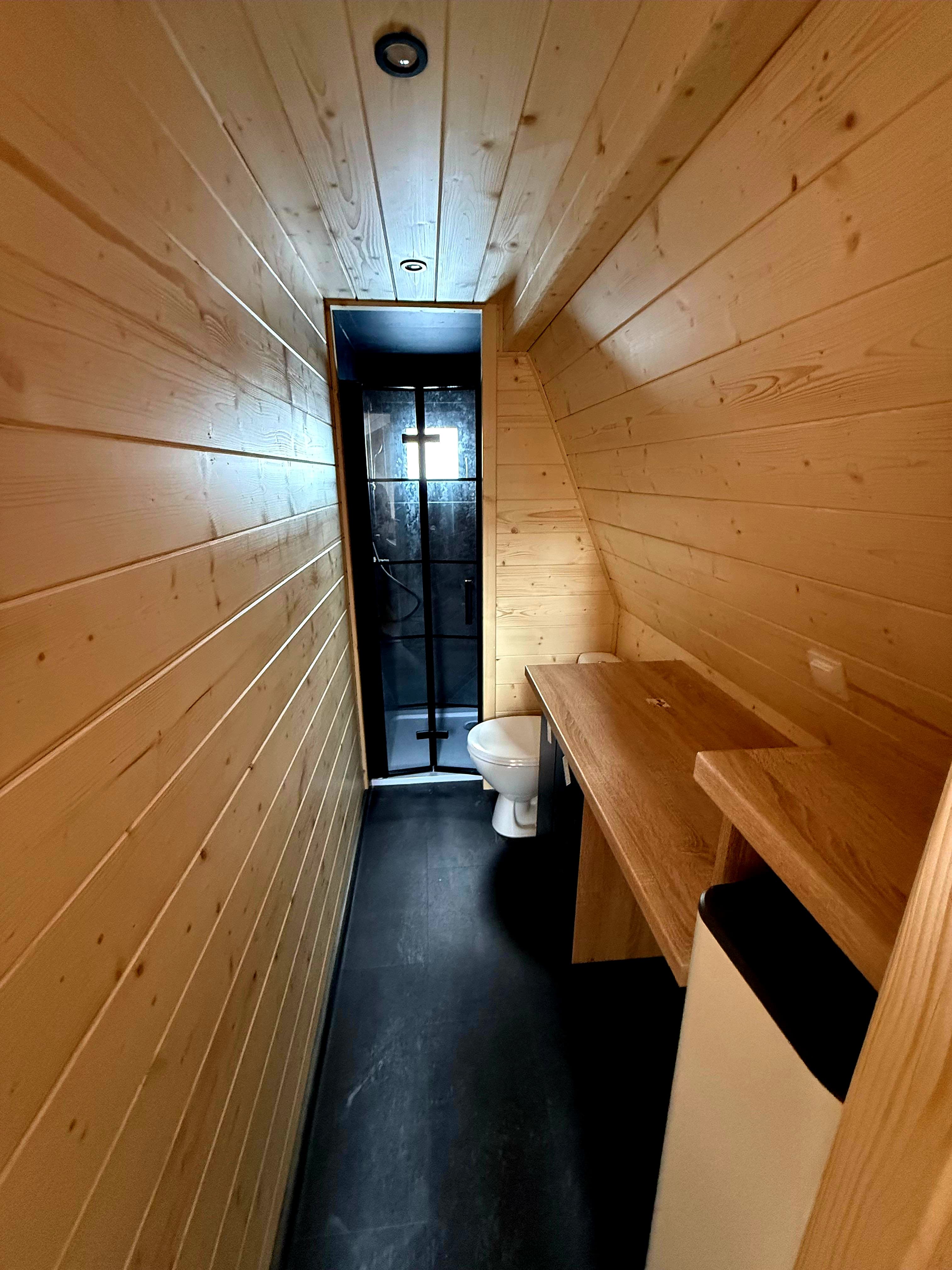 Trójkątne domki drewniane są bardzo popularne w serwisach typu Airbnb i Booking dzięki unikalnemu designowi i klimatycznemu wnętrzu. Domek BRDA 35 m² to idealna powierzchnia dla 2–6 osób, co zwiększa potencjał obłożenia i przychody z wynajmu.