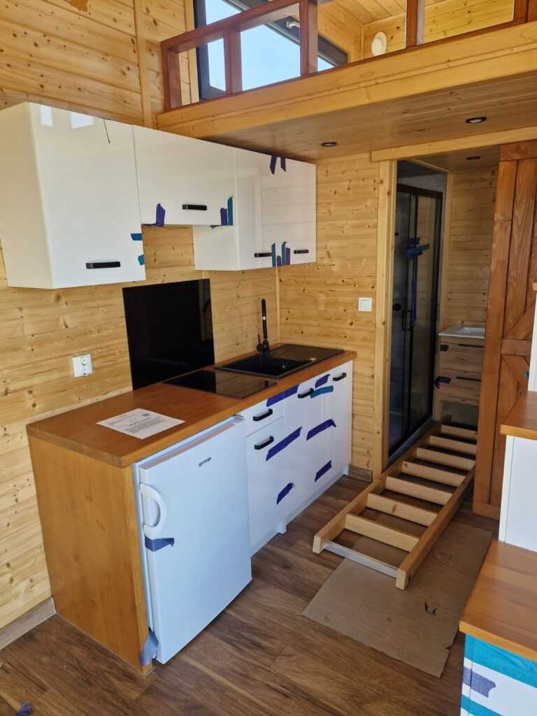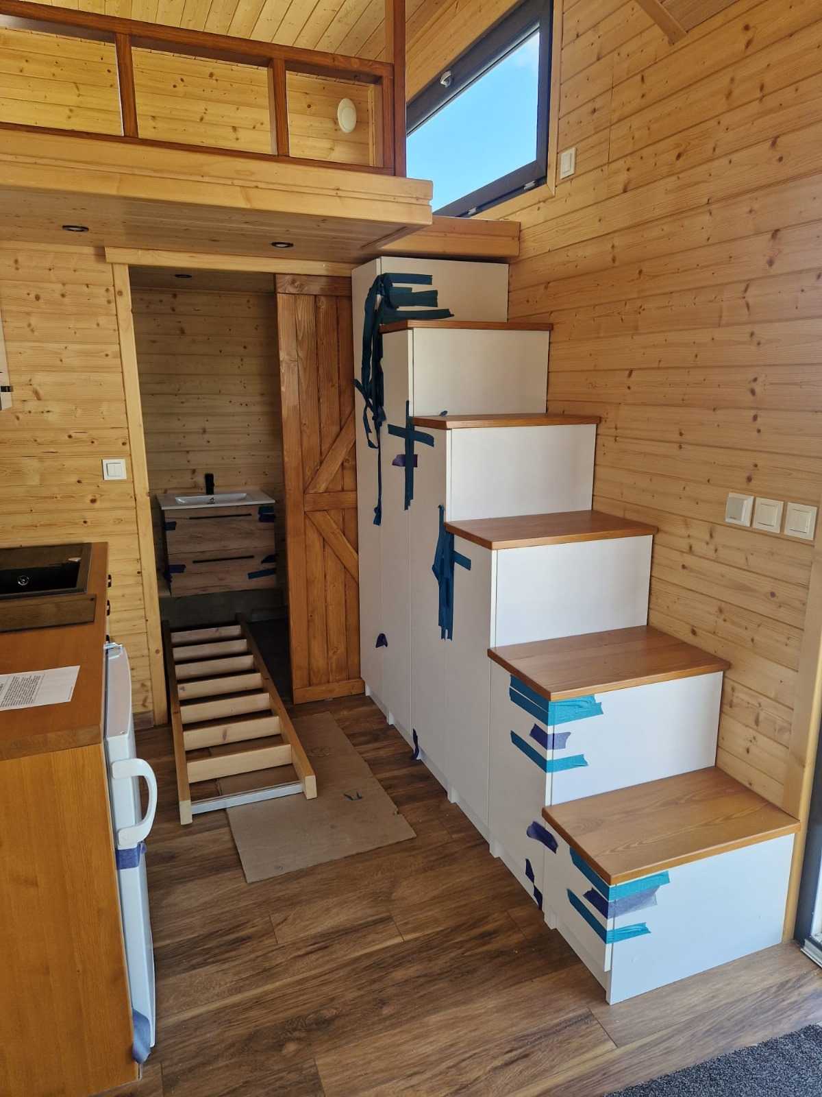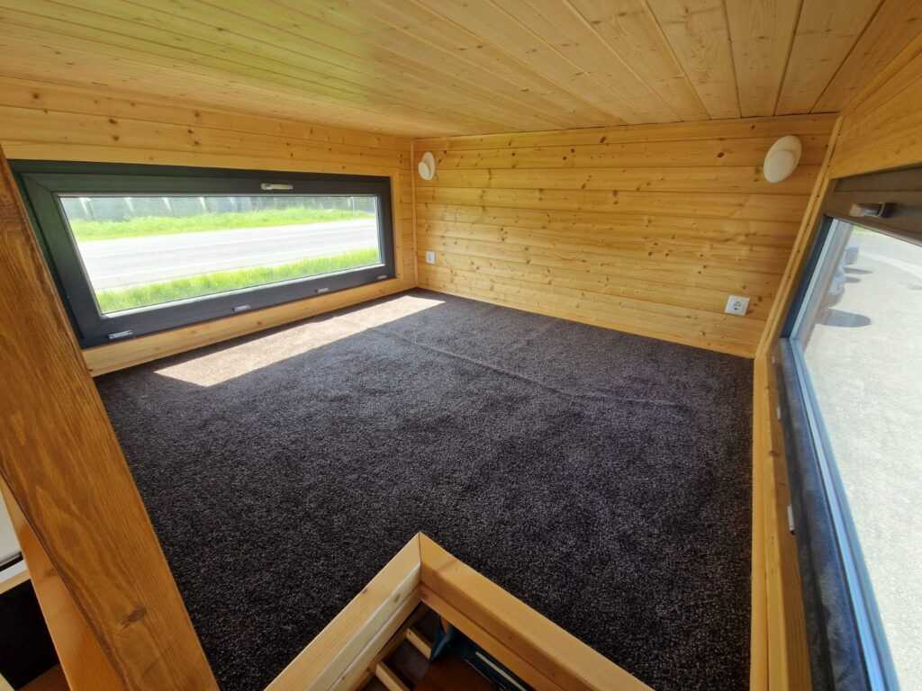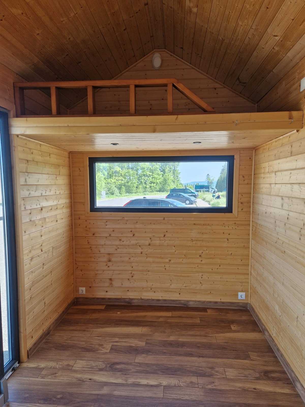 Mobilny domek TOMEK, na homologowanej przyczepie w pełni wyposażony, dwie antresole.