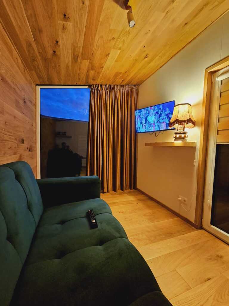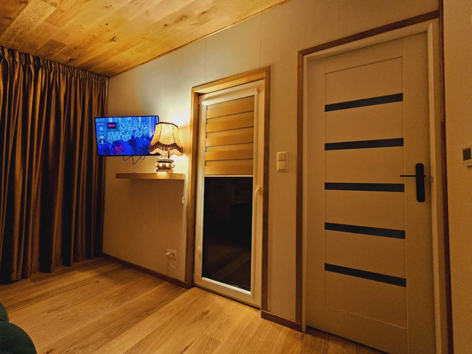 • Ściany wewnętrzne wykonane ze świerku syberyjskiego kolor jasny