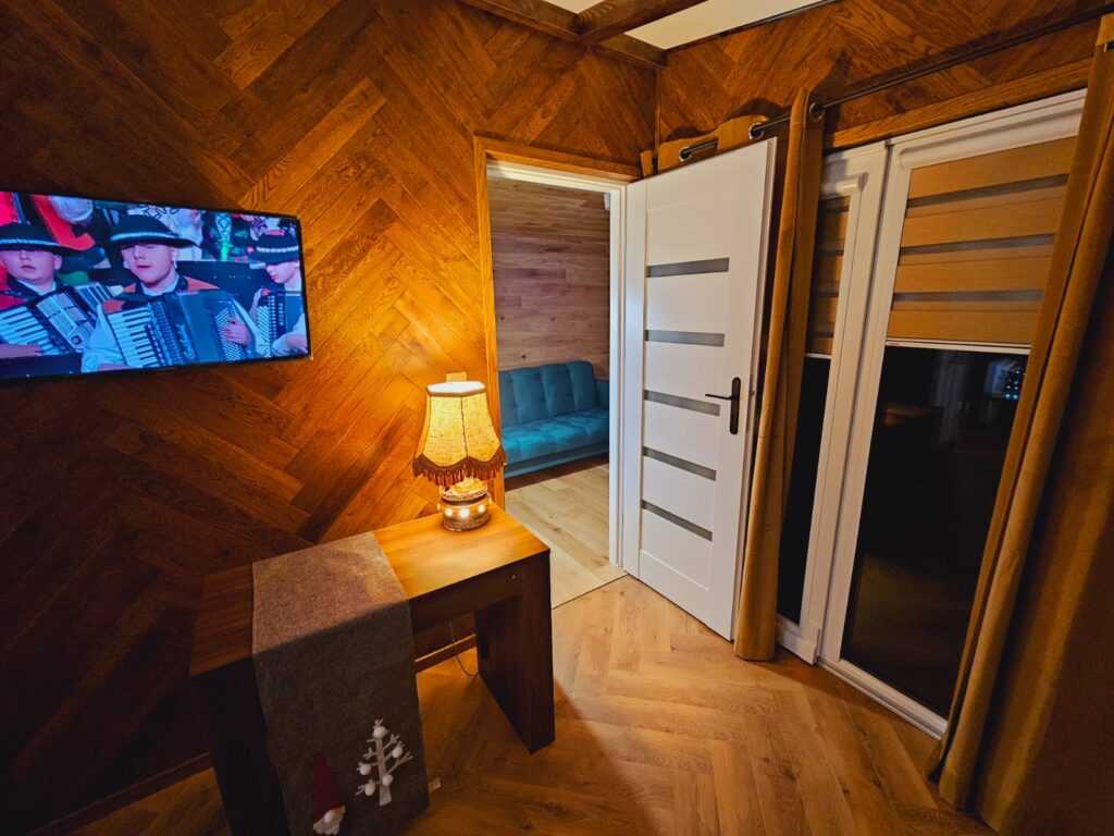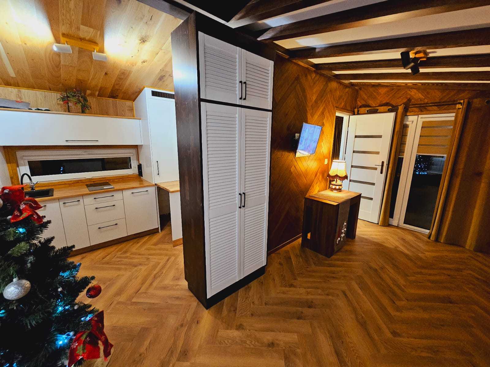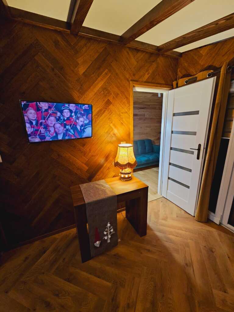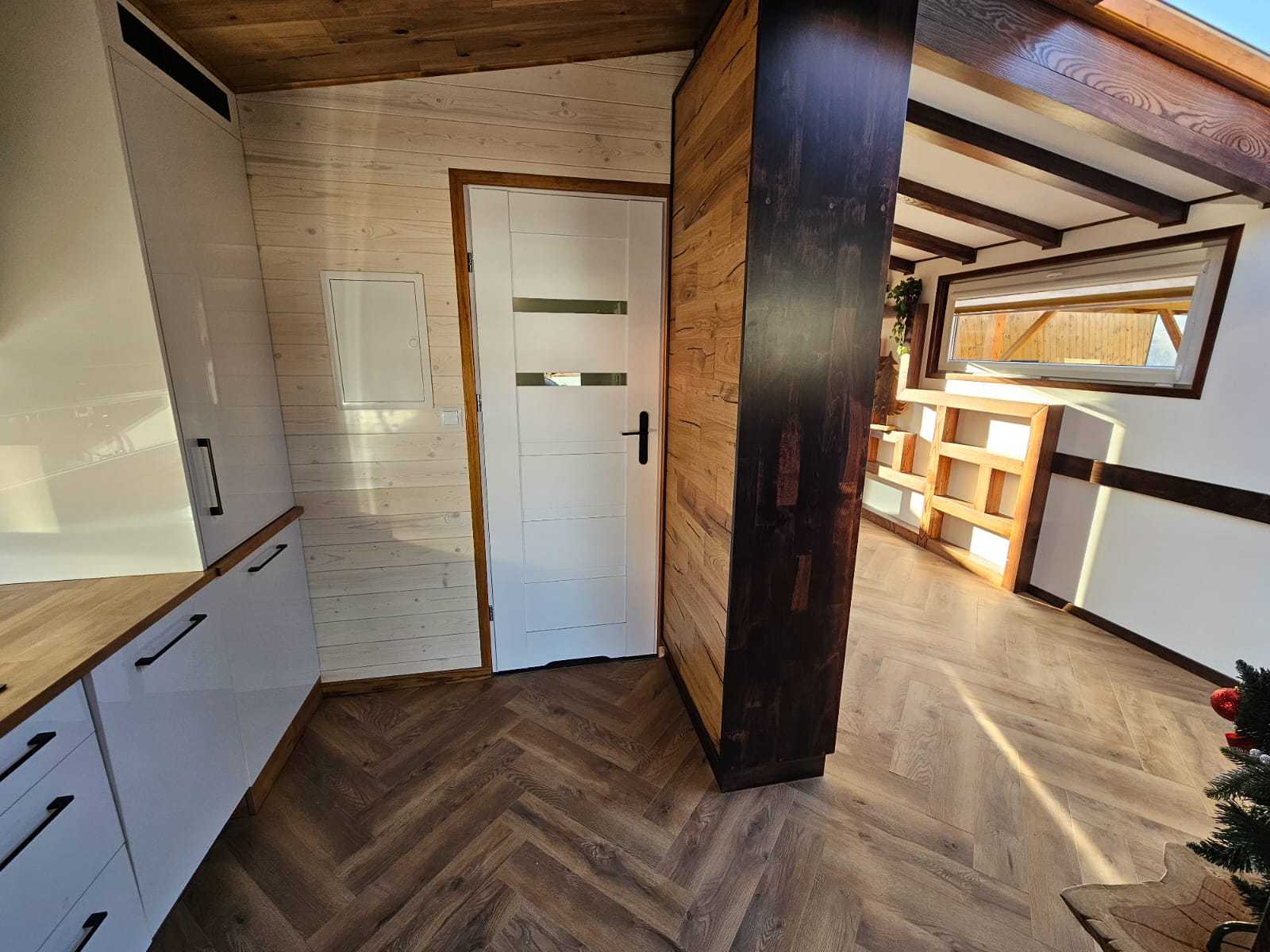 • Ściany kolor panele drewniane w połączeniu z białym