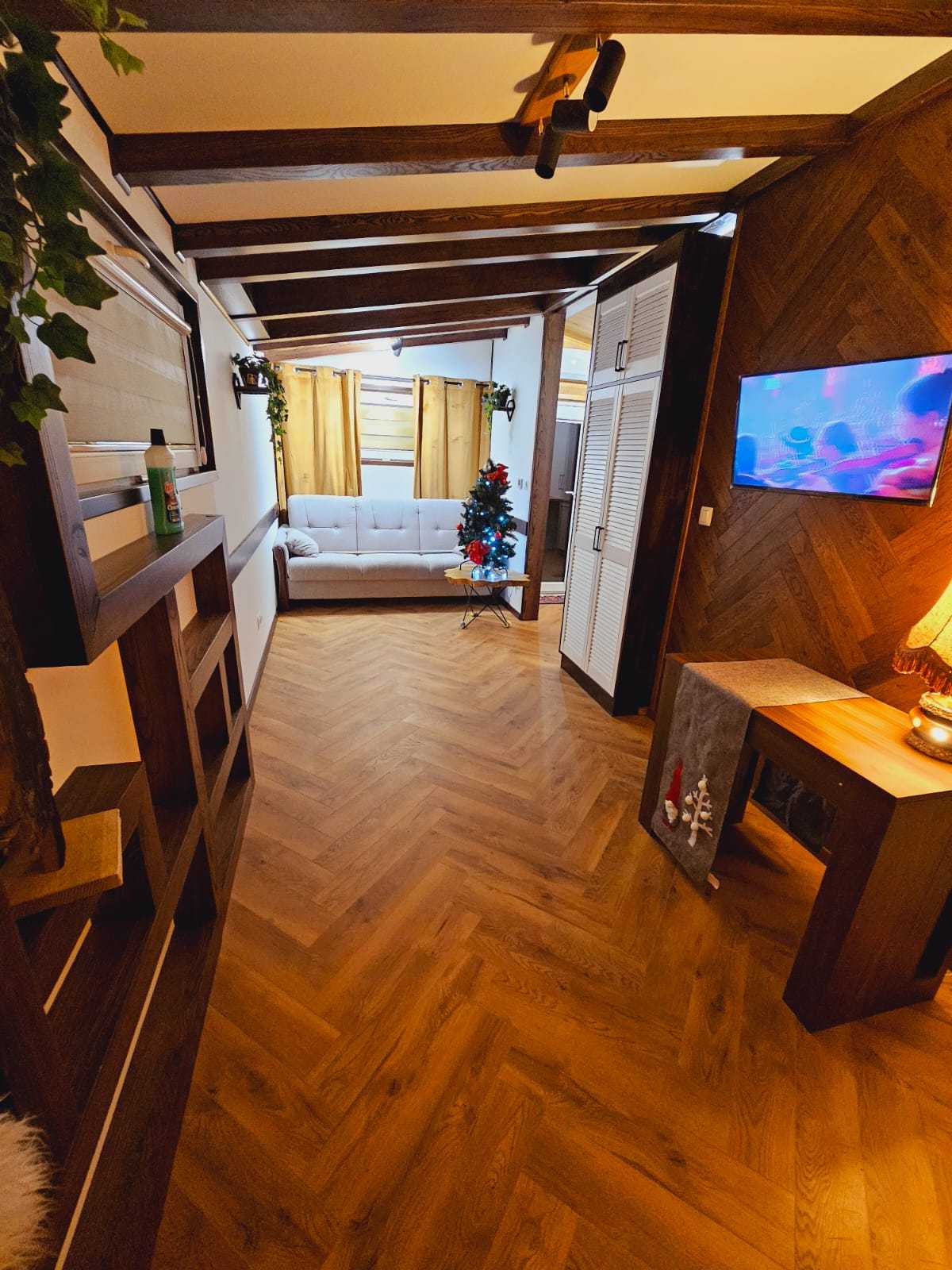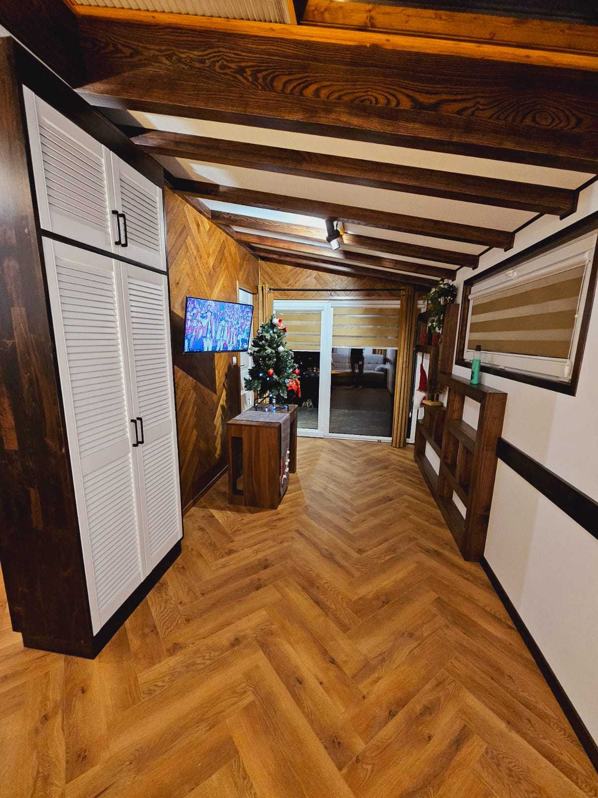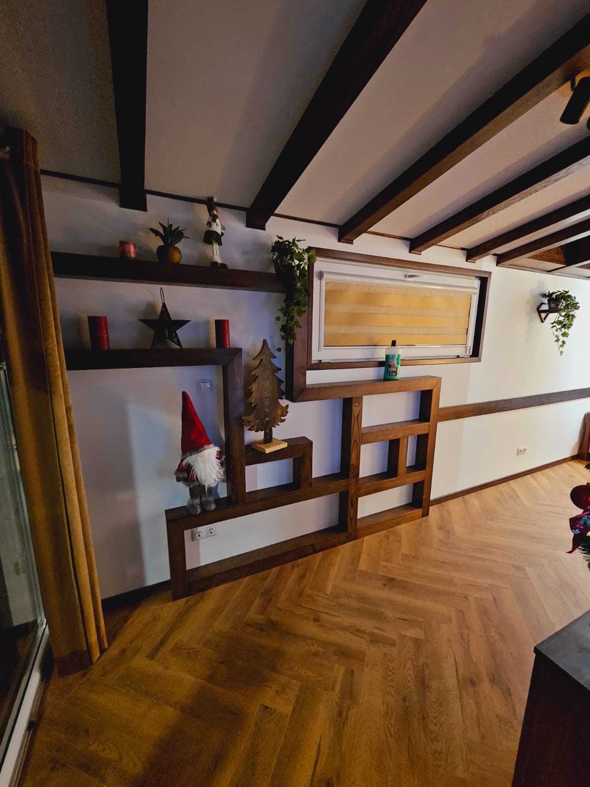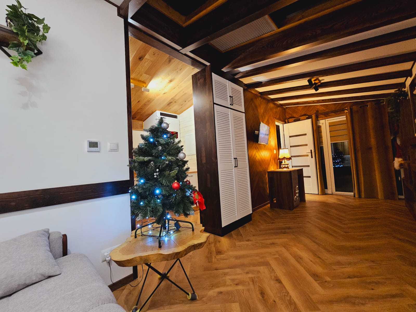• Ściany kolor panele drewniane w połączeniu z białym
