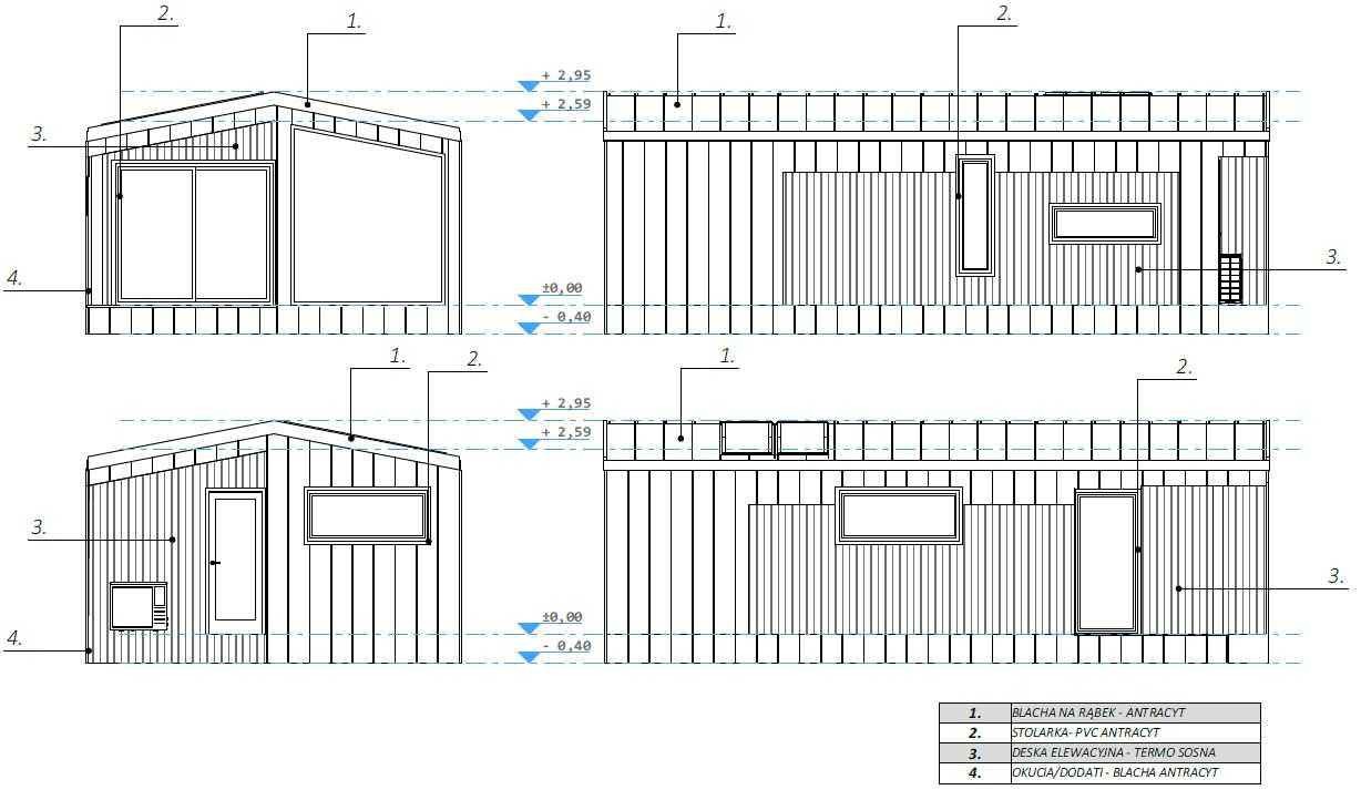 • Fasada zewnętrzna sosna termiczna w połączeniu z elewacją z blachy trapezowej – BLACHOTRAPEZ